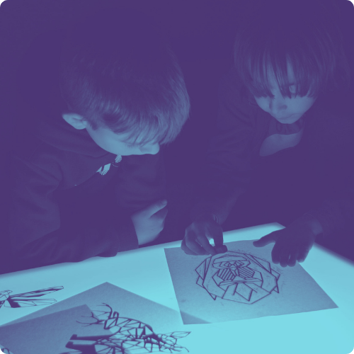 I laboratori intermediali attingono dal mondo del Making e dell’arte visiva. L’approccio pratico fa riferimento alla Maker education, disciplina che si ispira a teorie costruttiviste dell’apprendimento: learning by doing e all’educazione STEAM (Science Technology Engineering Art Mathematics). Le attività proposte si sviluppano alternando principalmente attività di arte e progettazione manuale e digitale, stimolando e sviluppando canali emozionali e competenze tecniche e trasversali. Vai ai progetti